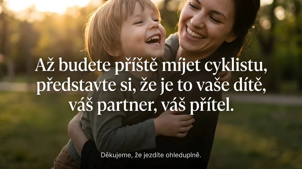 Odstup 1,5 m chrání vás i cyklistu, snižuje riziko nehody i trestu, zjednodušuje rozhodování v provozu a eliminuje nečekané manévry. Nejde o centimetry, jde o lidi. Až příště budete předjíždět cyklistu, zkuste si představit, že je to někdo z vaší rodiny. Díky ohleduplnosti se mohou všichni vrátit bezpečně domů.